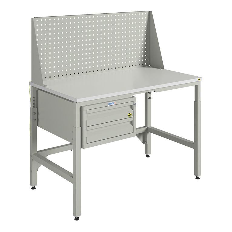 Модель рассчитана на использование в мастерских, на производственных участках и в цехах, где выполняются электромонтажные, регулировочные и наладочные работы. Главный плюс — антистатические свойства, соответствующие требованиям ГОСТ IEC 61340-5-1-2019: меньше риска для чувствительных компонентов и спокойнее работа с аппаратурой.