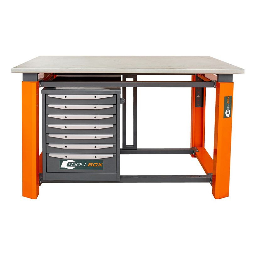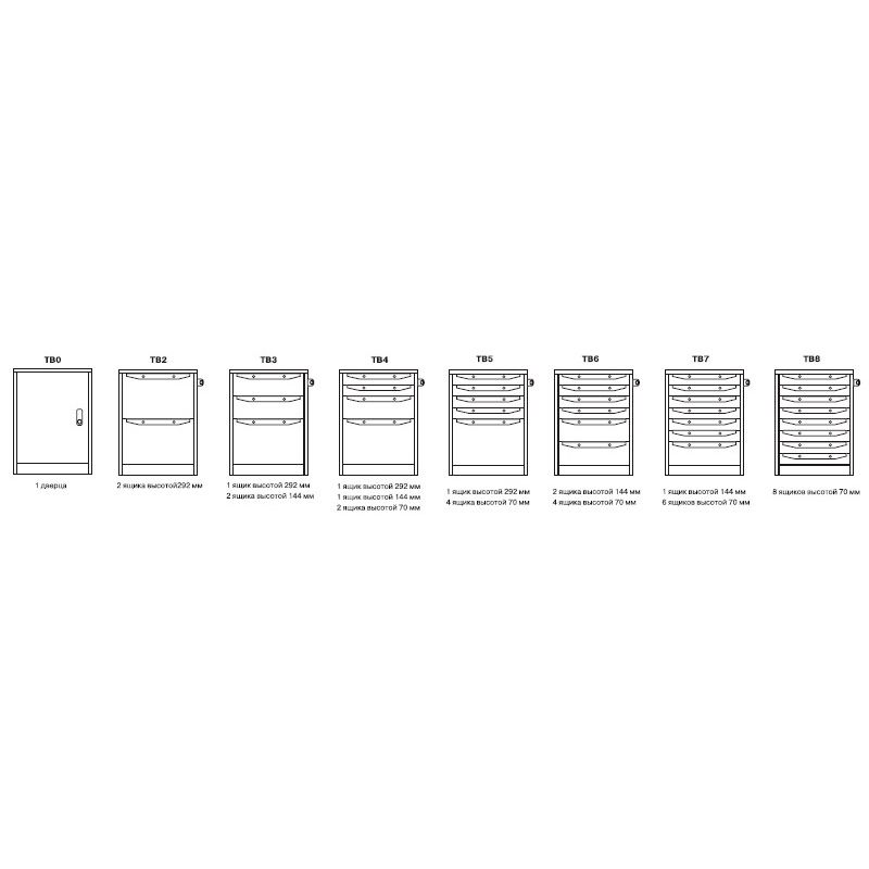 Комплектация продумана для тех, кто ценит порядок. В комплект входит одна тумба с 7 ящиками: расходники, измерительный инструмент и оснастка всегда под рукой и не живут на столешнице. Ящики рассчитаны на максимальную распределенную нагрузку до 45 кг на каждый, так что можно хранить не только мелочевку, но и более «весомые» наборы.