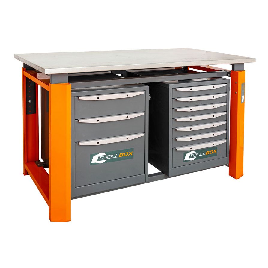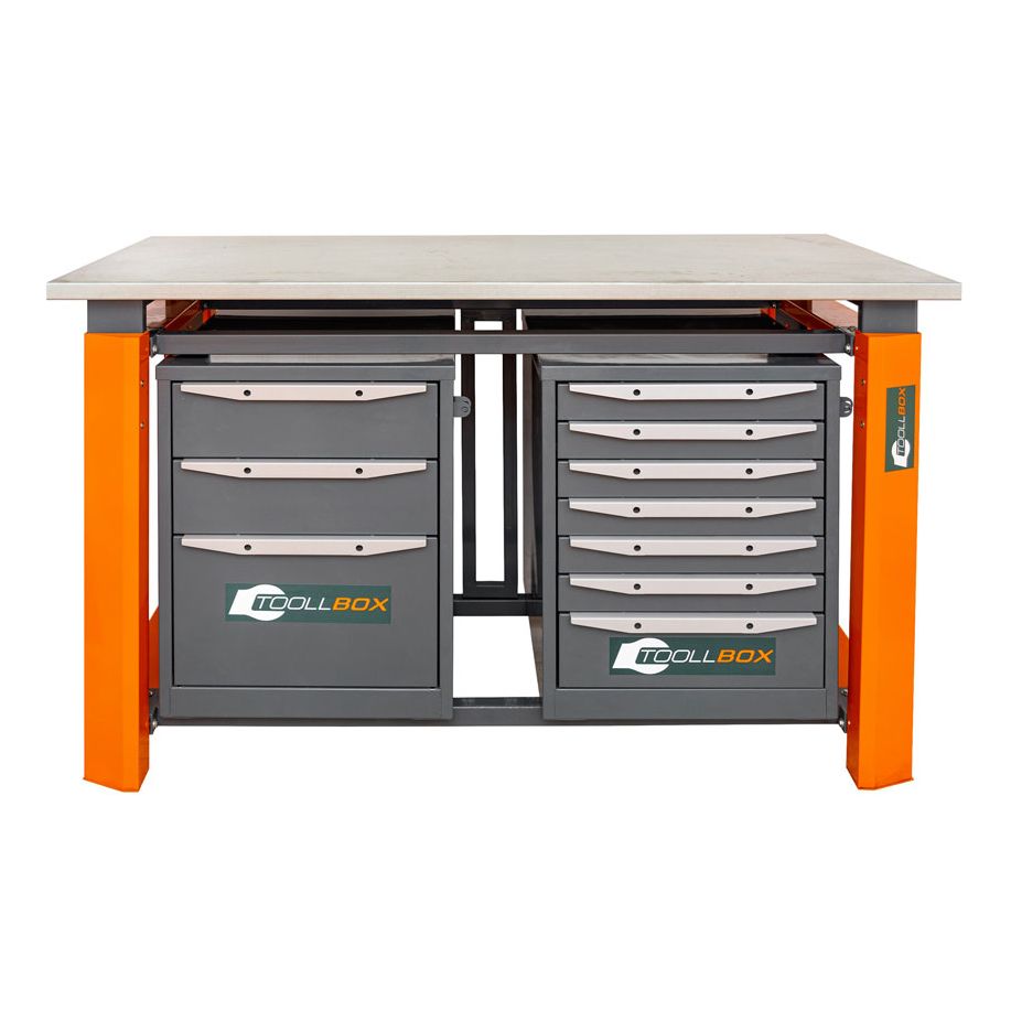 Верстак ТВР1500 (ТВ3–ТВ7) — это тот самый «основной пост» в мастерской, когда хочется один раз поставить рабочее место и надолго закрыть вопрос с удобством, порядком и запасом прочности. Модель двухтумбовая и комбинированная: под столешницей сразу две полноценные зоны хранения, поэтому инструмент и расходники не расползаются по углам, а остаются там, где им и место — под рукой.